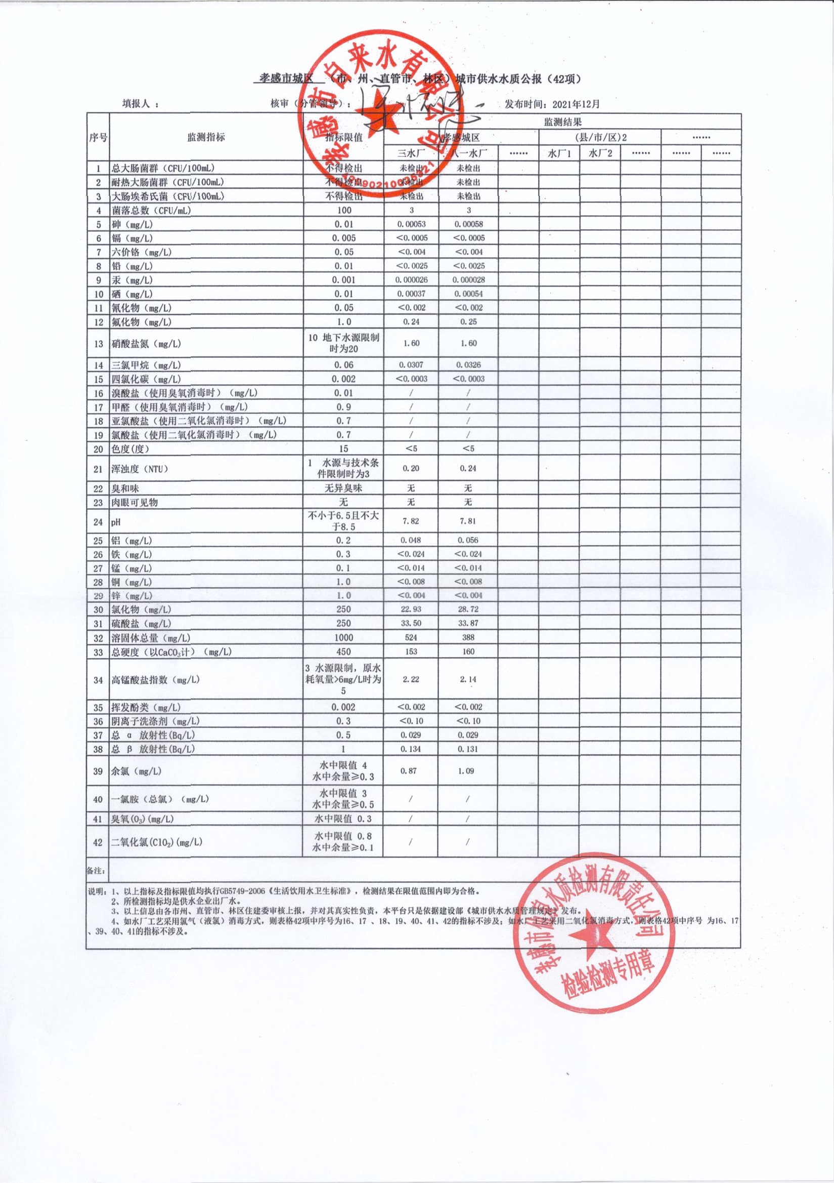 2021年12月水質(zhì)報告