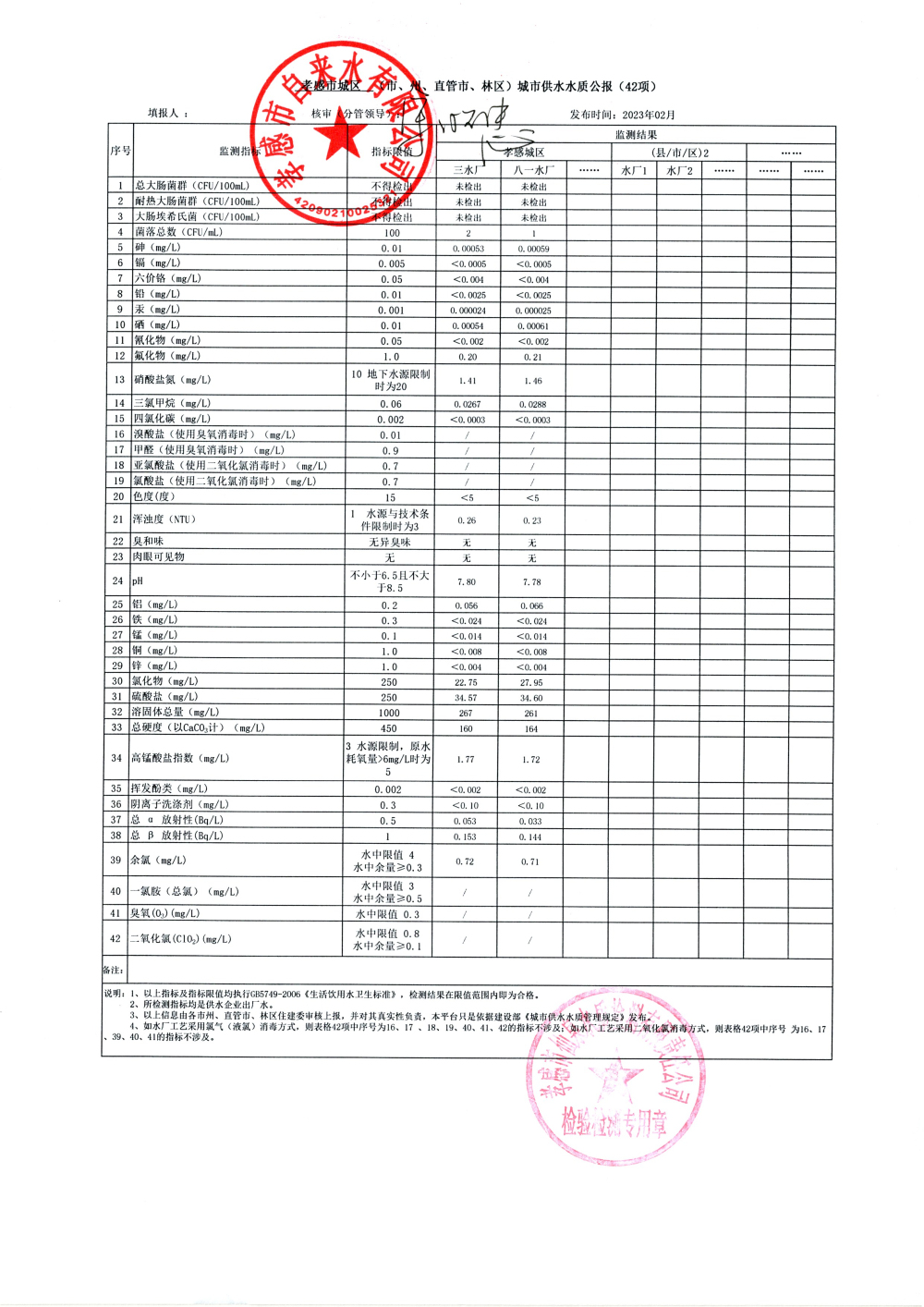 2023年2月水質(zhì)報(bào)告