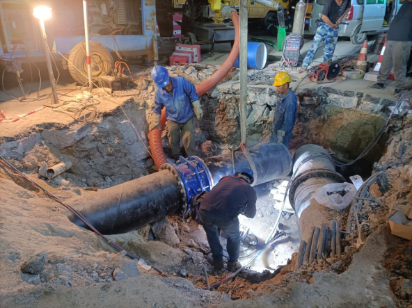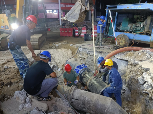 經(jīng)測算,此次城站路-長征路段改造老舊管網(wǎng)共計773米,采用球墨鑄鐵管DN500口徑管材。由于該路段岔路口較多,南北側(cè)共計需安裝16處支管,施工難度大。為確保工程進(jìn)度,8月19日,我公司工作人員提前進(jìn)場,倒排工期,抽調(diào)人員24小時駐守現(xiàn)場,統(tǒng)籌協(xié)調(diào),全力配足人力及機(jī)械。同時,科學(xué)安排晝夜輪班施工,在保證質(zhì)量的前提下快速推進(jìn)整體項目進(jìn)度。
