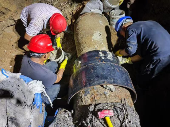晚上22點30分,管網(wǎng)漏水點被成功修復,保障沿線居民不間斷生活用水。