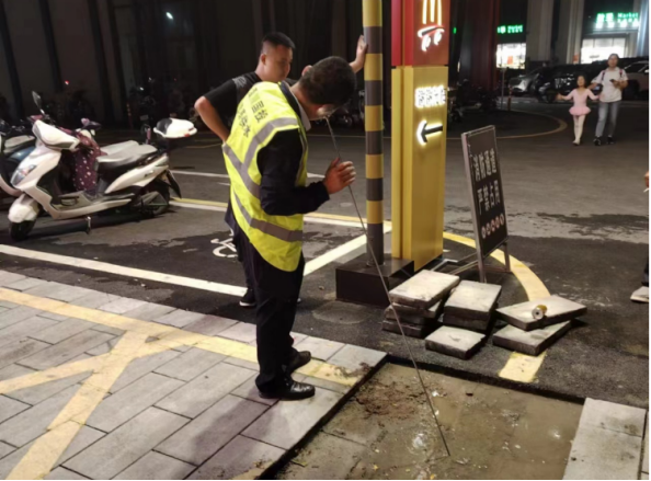 7月2日下午5點(diǎn)左右,公司客服熱線接到用戶反映,北京路民邦熙公館小區(qū)突然停水??蛻舴?wù)部工作人員第一時(shí)間來到現(xiàn)場,經(jīng)現(xiàn)場勘查發(fā)現(xiàn),小區(qū)進(jìn)水管道漏水,初步懷疑是內(nèi)部管道存在漏點(diǎn),造成停水。