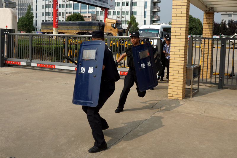 5月17日15時(shí)30分,一來歷不明的“暴恐分子”突然闖入我公司三水廠廠區(qū),意圖持刀“行兇”;水廠保安人員迅速報(bào)警,并利用防暴器械與其周旋。隨后公安特勤人員快速趕到現(xiàn)場,一舉將“暴恐分子”包圍制服,果斷處置了一場突發(fā)“暴恐”事件。