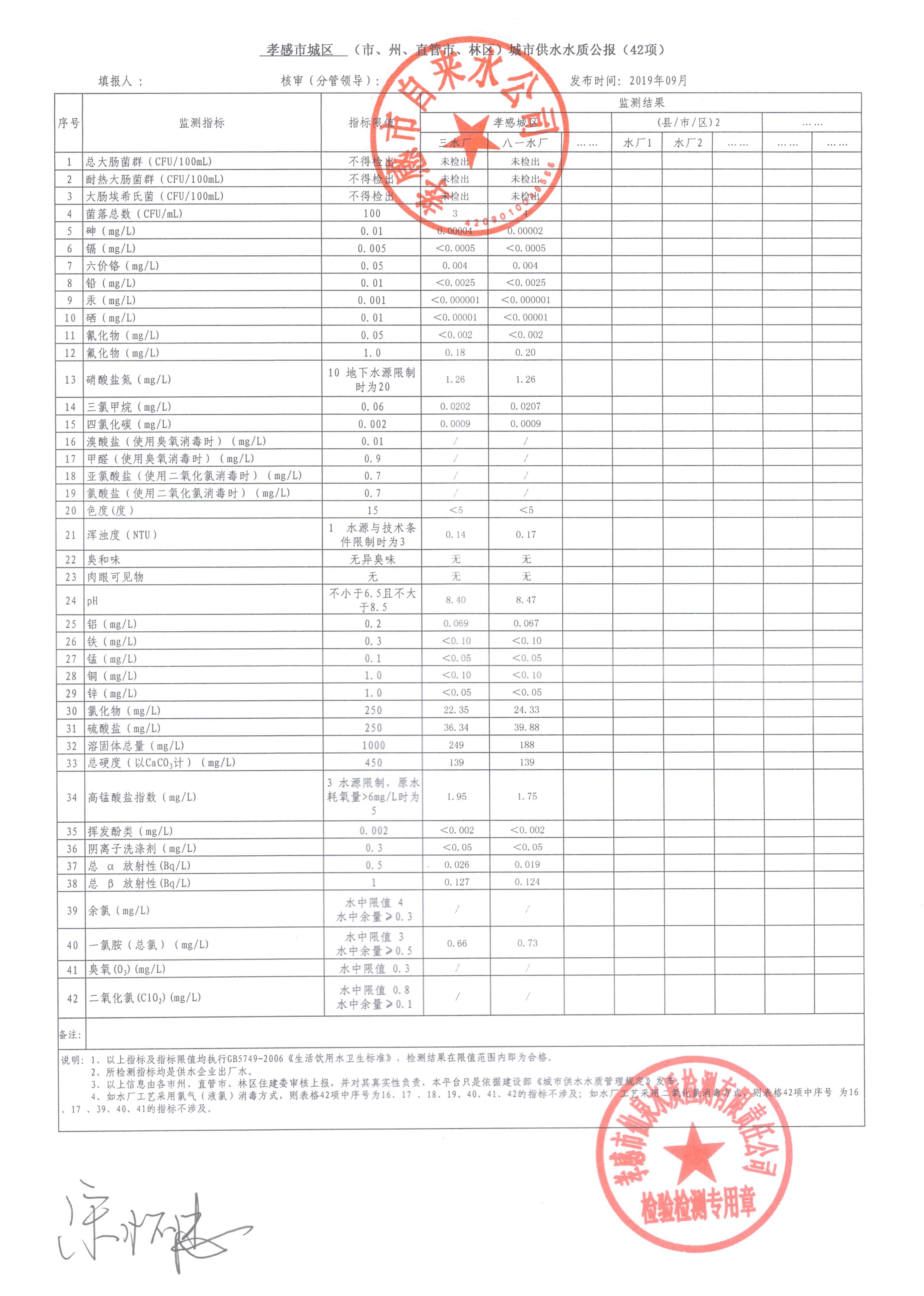 2019年9月水質(zhì)報(bào)告