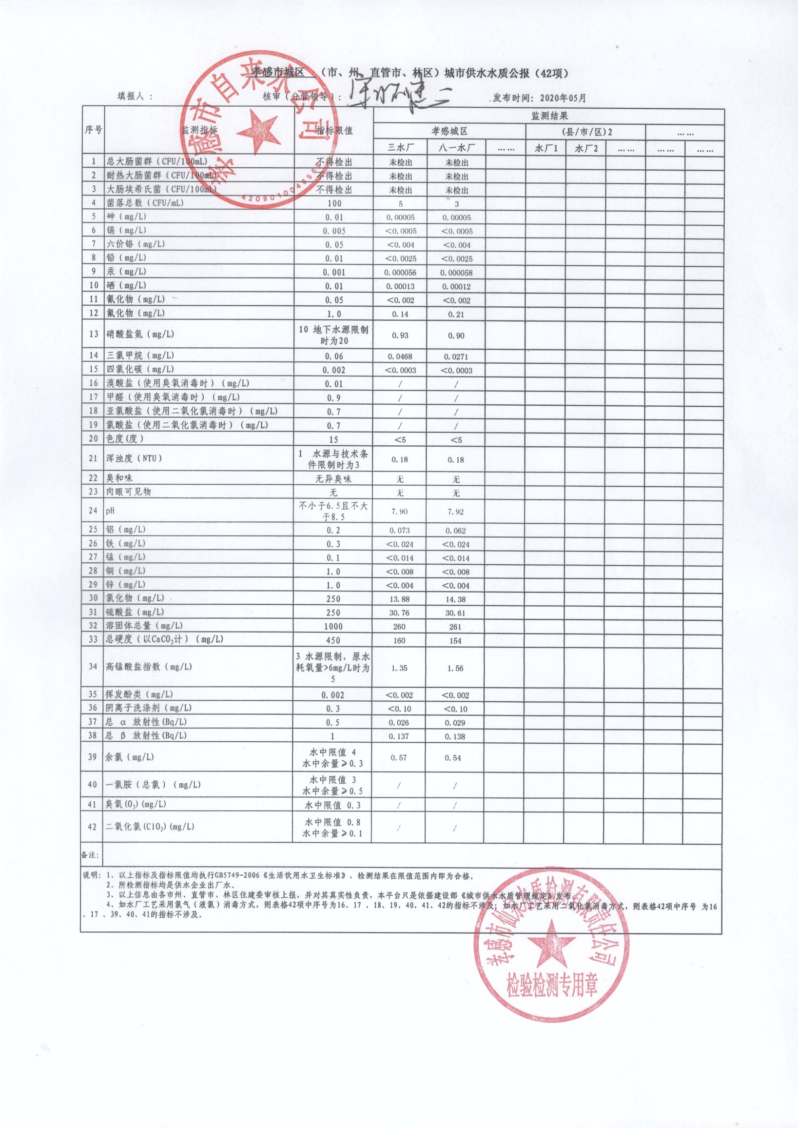 2020年5月水質(zhì)報(bào)告