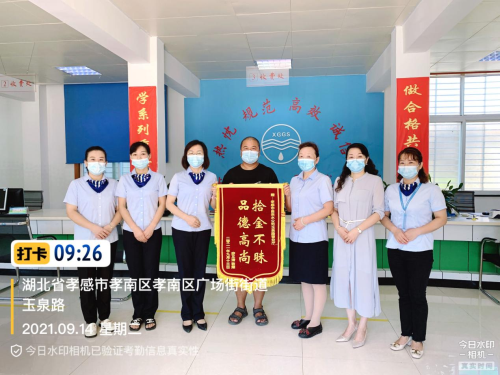 8月30日上午,營(yíng)業(yè)廳像往常一樣忙碌,余慧霞巡視大廳,整理座椅時(shí),發(fā)現(xiàn)了一疊現(xiàn)金。為了找到失主,工作人員前去調(diào)取監(jiān)控視頻,在監(jiān)控中看見(jiàn)一位男同志來(lái)我營(yíng)業(yè)廳交水費(fèi)時(shí),從口袋掏手機(jī)不小心把錢掉在地上。我們通過(guò)水費(fèi)單上的聯(lián)系方式致電用戶,可是該用戶在武漢做生意比較忙,已經(jīng)驅(qū)車前往武漢,委托我公司營(yíng)業(yè)廳代為保管,所以一直遲遲沒(méi)來(lái)領(lǐng)取,9月13日一大早用戶來(lái)玉泉路營(yíng)業(yè)廳比對(duì)核實(shí)身份并領(lǐng)取遺失的現(xiàn)金,并于9月14日早上再次送錦旗表示感謝!