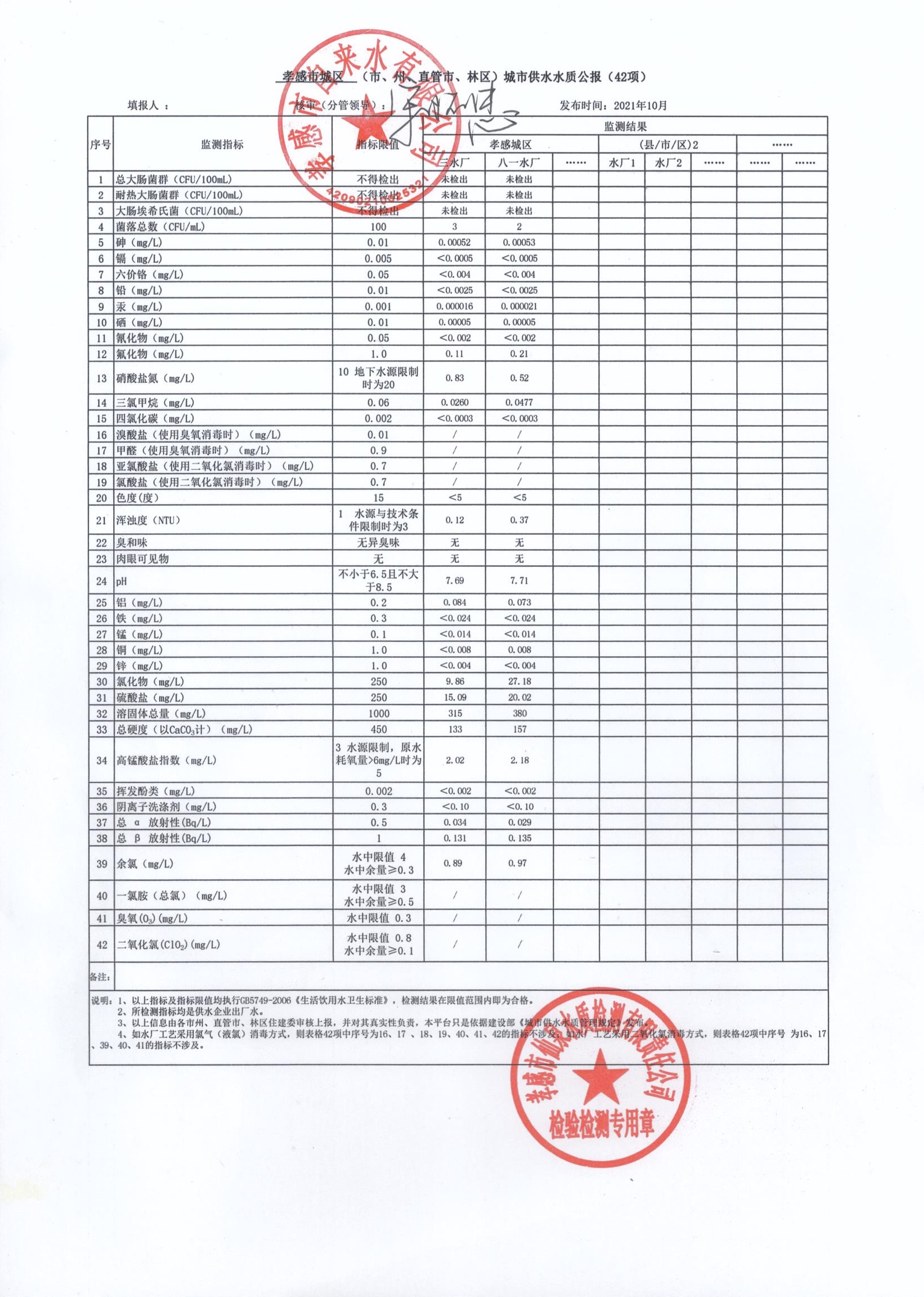 2021年10月水質(zhì)報(bào)告