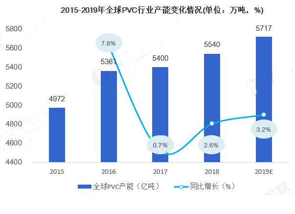 In recent years, global PVC production capacity has continued to grow. According to IHS data, in 2018, the global PVC production capacity was 55.4 million tons, and in 2019, the global PVC production capacity was about 57.17 million tons.