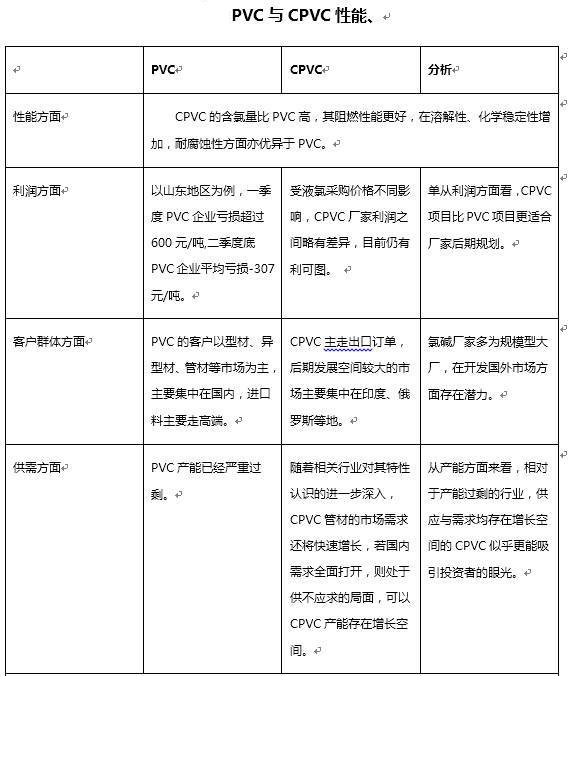 下面從氯堿廠家的角度來分析PVC與CPVC: