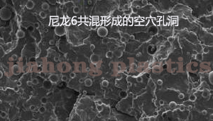 四、空穴化機(jī)理。尼龍6增韌共混物在三維張應(yīng)力作用下發(fā)生斷裂產(chǎn)生球型空穴化孔洞,空穴過(guò)程中產(chǎn)生剪切屈服,引發(fā)基體產(chǎn)生多重銀紋,共混物沖周強(qiáng)度顯著提高,發(fā)生脆韌性轉(zhuǎn)變。