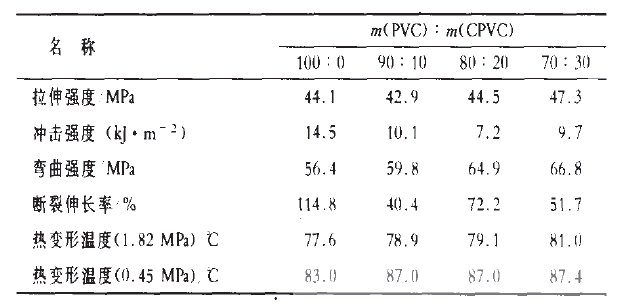 實驗中較早先選擇鉛鹽穩定劑,探討共混比對PVC/CPVC二元合金性能的影響,結果見表1。