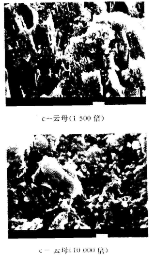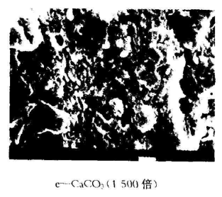 2.4 不同填料品種的PVC/CPVC合金沖擊試樣斷面的形貌在鉛鹽穩定劑的作用下,m(PVC):m(CPVC)=70:30選用B一564為沖擊改性劑,觀察加入滑石粉、陶土、云母、硅土、CaCO,等不同填料的PVC/CPVC合金體系在電子掃描電鏡下的微觀結構。