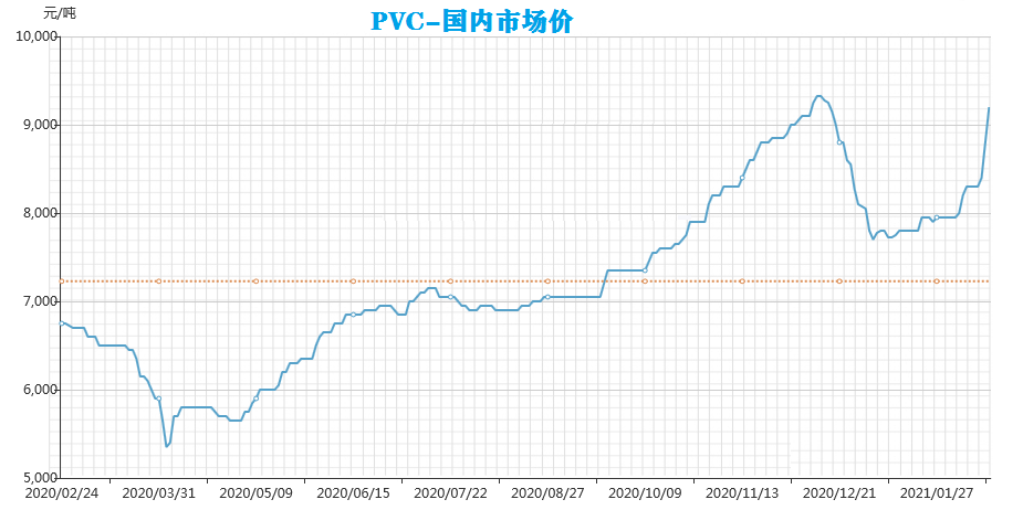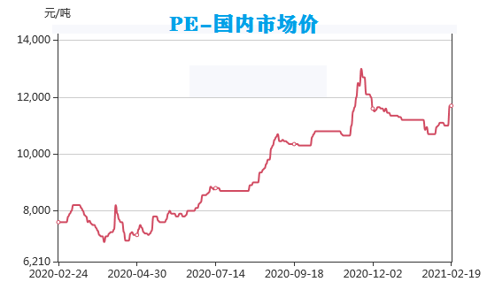 2021年春節(jié)一過,塑料原材料行情受開工率企高影響,全面逆勢上漲,除了個別維持高位震蕩以外,PVC等原材料的價格都出現(xiàn)了直線上升的態(tài)勢,預(yù)計此行情還將至少持續(xù)兩個月。