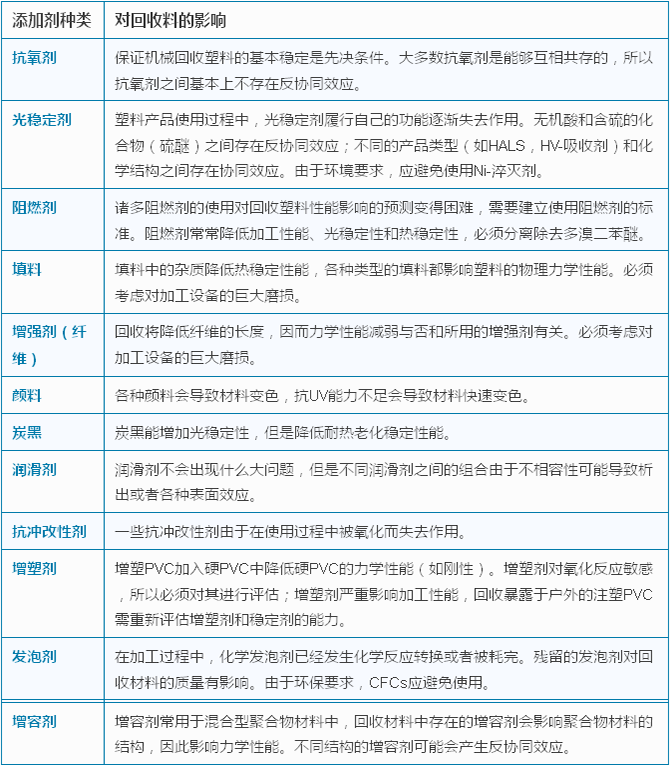 在回收塑料過程中,不同添加劑之間會出現協同效應和反協同效應,但是,大多數情況下,不同來源的混合添加劑之間經常產生消極效果。(轉自塑料網)